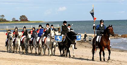 Alle Reiter und Reiterinnen nahmen dafür Aufstellung am Strand. Prominenter Gast war Breido Graf zu Rantzau (links im Bild). Der Präsident der Deutschen Reiterlichen Vereinigung wies auf die Bedeutung des Reitsports in Deutschland hin. 750000 Reiter sind in 7600 Vereinen organisiert. Dazu kommen noch einmal ebenso viele, die nicht in Vereinen mitmachen. Allein 100000 Reiter nehmen an Turnieren teil, so der Graf. Man konnte sich den Worten des Vorsitzenden des Fremdenverkerhrs- und Gewerbevereins Fritz Schwardt anschließen: "Es ist heute ein schöner Tag mit dem Pferd!".