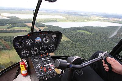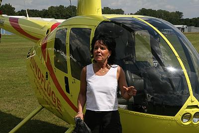 Nachdem wir uns ein bisschen gestärkt hatten, konnte ich meine Frau auch überzeugen, wenigstens mal einen kleinen Rundflug mit dem Helikopter zu machen. Ich hab's ihr angesehen. Keine große Begeisterung, aber nachdem Fluglehrer Reihnhard Weitkamp sie doch überzeugen konnte, stieg man in den Heli ein. Und dann ging alles ganz fix. Da hatte man dann keine große Zeit mehr über das Für und Wider nachzudenken.